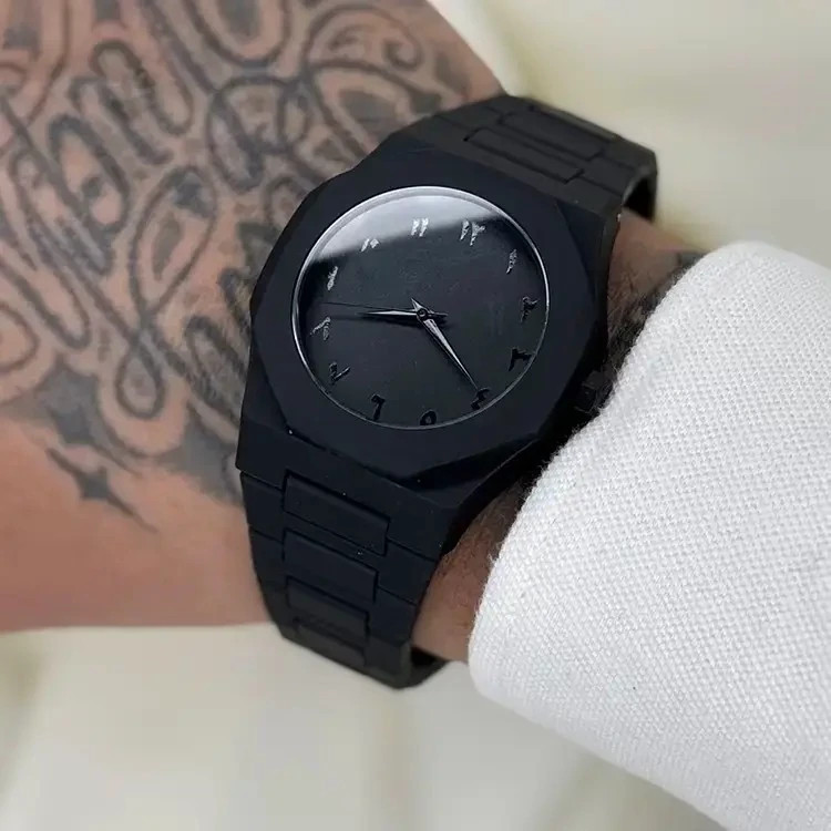 ساعت فول بلک دسته کربنی رنگ ثابت ضد اب با بهترین کیفیت ممکن ضمانت 6 ماهه رنگ ثابت بودن ساعت